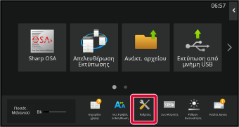 Όταν η συσκευή USB έχει συνδεθεί στο μηχάνημα, θα εμφανιστεί ένα αναδυόμενο παράθυρο. Πατήστε το πλήκτρο [ΟΚ].Πατήστε το πλήκτρο [Ρυθμίσεις] στην αρχική οθόνη.