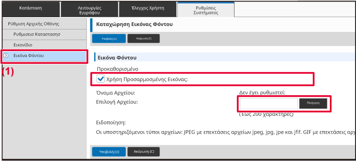 Θα εμφανιστεί η οθόνη "Καταχώρηση Εικόνας Φόντου".