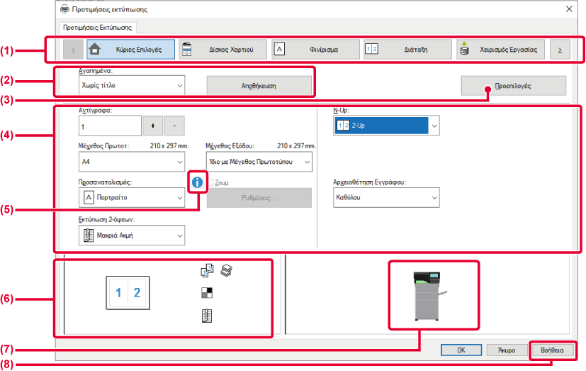 [Διάταξη]: Επιλέξτε λειτουργίες που σχετίζονται με τη διάταξη, όπως εκτύπωση διπλής