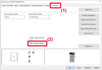 Για τις επεξηγήσεις των ρυθμίσεων, δείτε τη Βοήθεια του προγράμματος οδήγησης εκτυπωτή.Κατά τη χρήση του συγκεκριμένου μηχανήματος ως κοινόχρηστου εκτυπωτή, αν είναι καθορισμένη