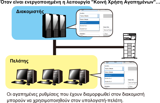 η ρύθμιση "Αγαπημένα" στο πρόγραμμα οδήγησης εκτυπωτή του κοινόχρηστου διακομιστή,