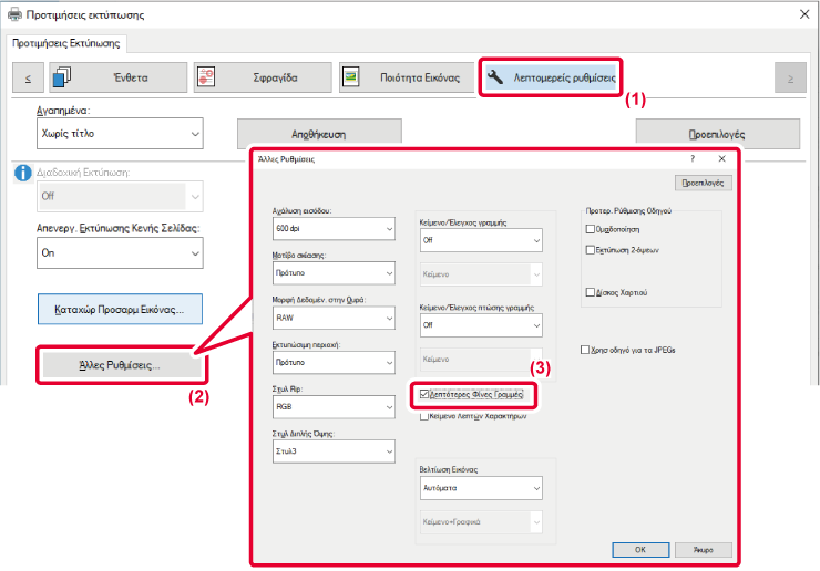 Έλεγχος καθαρισμού χρωμάτων κειμένου/γραμμών |