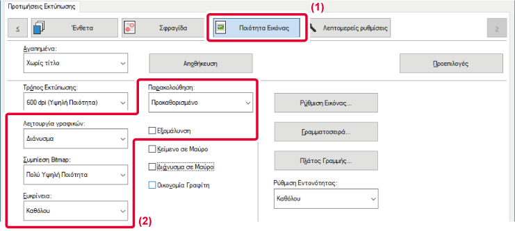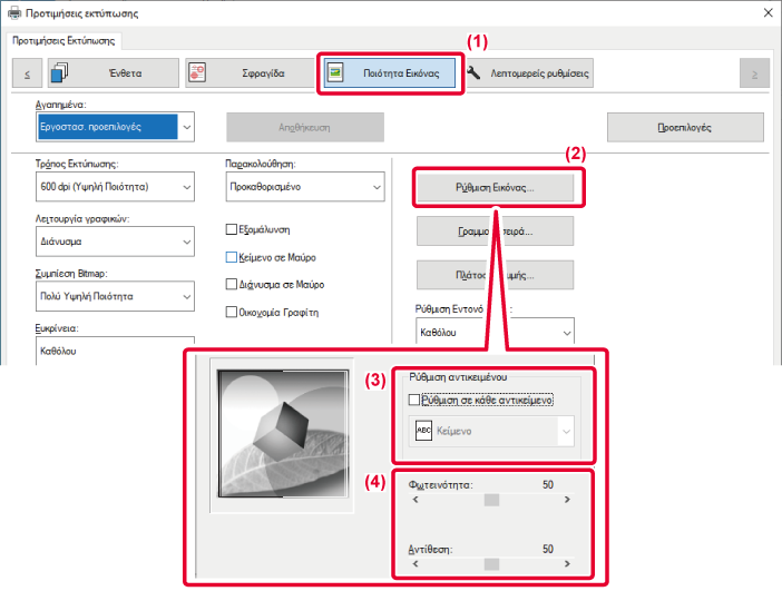 Με αυτήν τη λειτουργία ρυθμίζεται η φωτεινότητα και η αντίθεση στις ρυθμίσεις εκτύπωσης,
