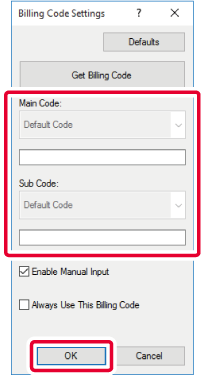 Κατά την έναρξη της εκτύπωσης, θα εμφανιστεί η οθόνη καθορισμού του κωδικού χρέωσης.