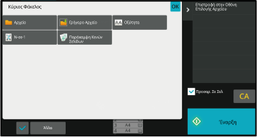 Πατήστε [Επιλογή Αρχείου από Μνήμη USB προς Εκτύπωση] ή [Επιλογή Αρχείου από Δικτ Φάκελο προς Εκτύπ] στον πίνακα ενεργειών.