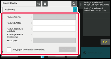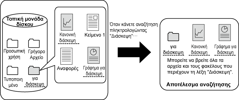 Η αναζήτηση είναι δυνατή ακόμη και όταν γνωρίζετε μόνο ένα μέρος του ονόματος του αρχείου ή του ονόματος του φακέλου. Μπορείτε είσης, ανάλογα με τις απαιτήσεις σας, να καθορίσετε κάποιον φάκελο στο πεδίο αναζήτησης.