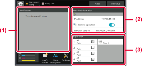 In addition, in case that an error has occurred to this machine, this screen is displayed