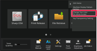 The settings are saved in the machine and applied.This section explains how to change a shortcut key in the home screen.