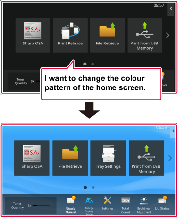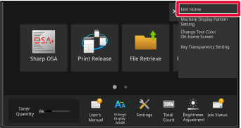 The settings are saved in the machine and applied.Multiple home screen layout patterns are preset in the machine. These include a layout