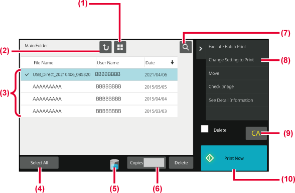- Tap this key to display the usage status of the machine's built-in storage.