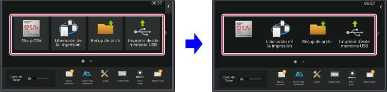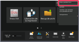 Los ajustes se guardarán en la máquina y se aplicarán.Puede añadir teclas de acceso directo a la pantalla de inicio y eliminar teclas innecesarias.