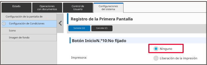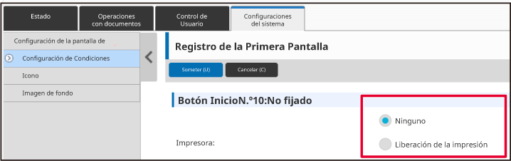 Si hace clic en el botón [Someter], se cierra la pantalla [Registro de la Primera Pantalla].Cuando haya terminado de configurar los ajustes, haga clic en el botón [Someter].