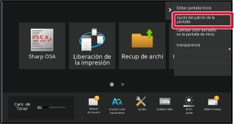 Abra el panel de acción en la pantalla de inicio , y pulse [Ajuste del patrón de la pantalla].