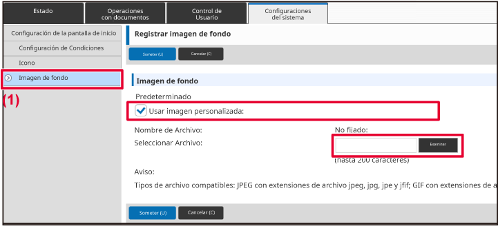 Marque la casilla de verificación [Usar imagen personalizada]