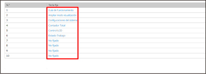 Los ajustes se guardarán en la máquina y se aplicarán.Puede cambiar las teclas fijas. Las teclas fijas se cambian desde la página web.