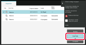 Al pulsar la pantalla de estado de los trabajos, se muestra el estado de los trabajos.