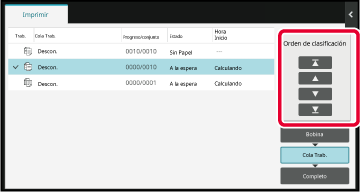 un trabajo en la cola para cambiar el orden de los trabajos. Toque la tecla correspondiente