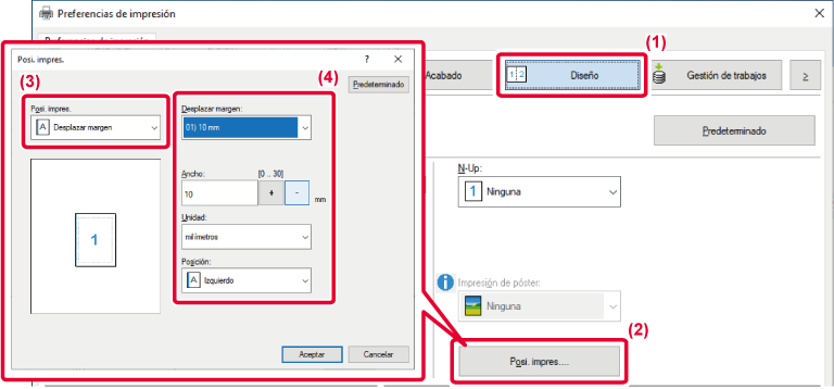 IMPRESIÓN CON CONFIGURACIÓN DE DESPLAZAMIENTO DE MARGEN (MARGEN)