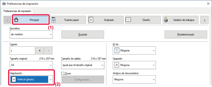 en papel que sólo se puede cargar en una orientación (como sobres o papel perforado).