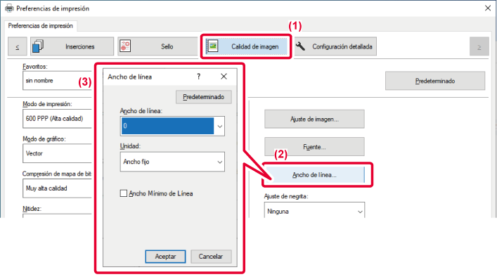 Esta función permite aumentar el grosor de toda la línea cuando las líneas de impresión