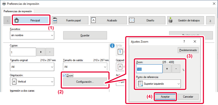 Esto permite ampliar una imagen pequeña o agregar márgenes al papel reduciendo ligeramente