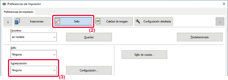 - Seleccione [Marcas de agua] en "Sello" y haga clic en el botón [Ajustes].