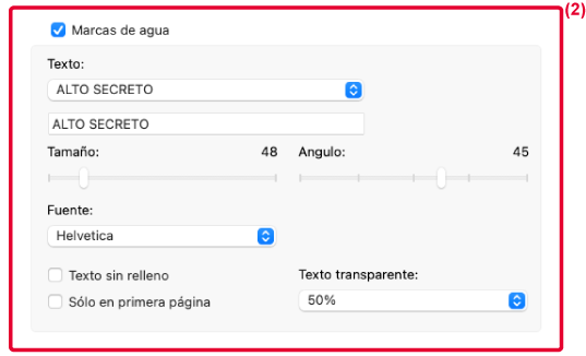 - Haga clic en la casilla de verificación [Marcas de agua] y configure las opciones