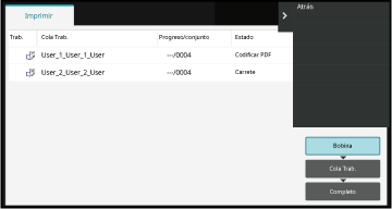 Cuando se pulsa la pantalla de estado de los trabajos, aparecen los trabajos en una