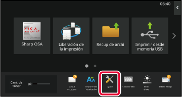 Toque la tecla [Ajustes] en la pantalla de inicio.