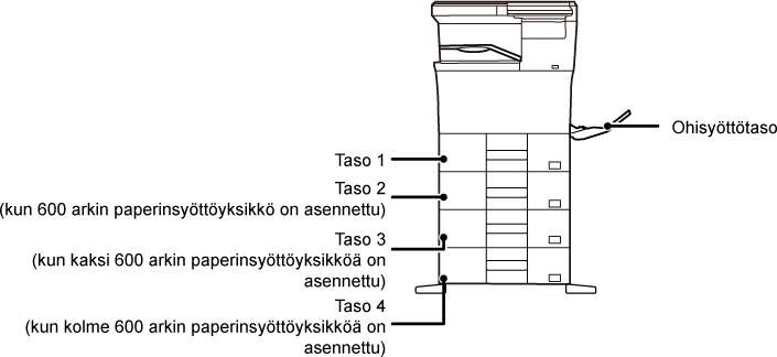Paperin asettaminen sen tulostuspuolen mukaan vaihtelee riippuen siitä, mitä tasoa