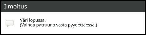 Jos jatkat laitteen käyttöä, seuraava viesti näytetään, kun väriaine loppuu.