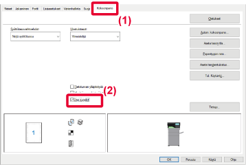 Asetukset voidaan tallentaa miltä tahansa tulostinajurin ominaisuuksien ikkunan välilehdeltä.