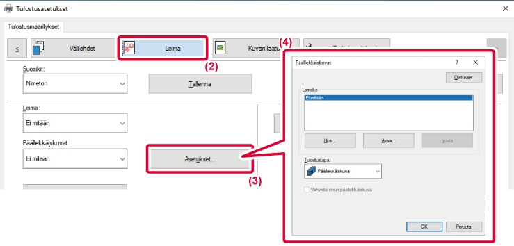 Tulostus päällekkäiskuvatiedoston kanssa