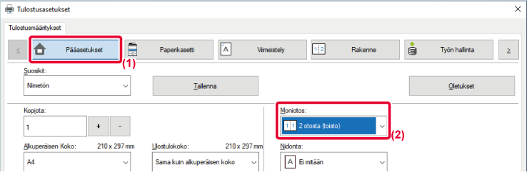 sivunumero. Kun "Tulostustapa" on [2-puolinen tulostus], määritetty sivu ja sen jälkeinen