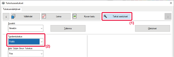 2. Valitse [Päällä] kohdassa "Tandemtulostus"