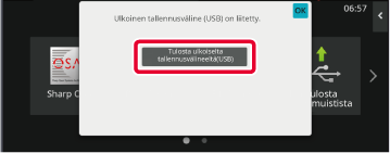 Kun näyttö toiminnan valitsemiseksi tulee näkyviin, kosketa [Tulosta ulkoiselta tallennusvälineeltä(USB)].