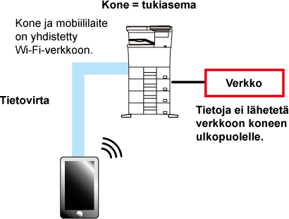 Laite ja mobiililaite viestivät suoraan Wi-Fin kautta. Tässä tilassa yhteys verkkoon,
