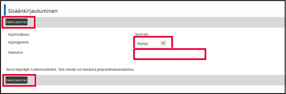 • Valitse käyttäjä, jolla on järjestelmänvalvojan oikeudet ja syötä käyttäjän salasana.