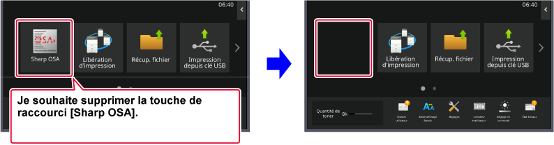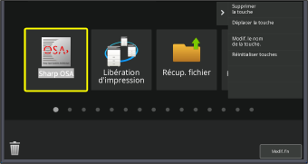 Les réglages sont enregistrés dans la machine et ils sont appliqués.Cette section explique comment déplacer une touche de raccourci dans l'écran d'accueil.