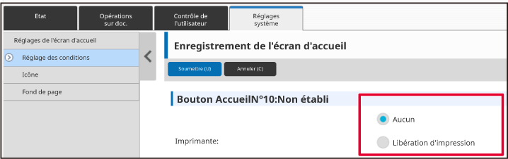 Lorsque vous cliquez sur le bouton [Soumettre], l'écran [Enregistrement de l'écran d'accueil] se ferme.Lorsque vous avez fini de configurer les réglages, cliquez sur le bouton [Soumettre].