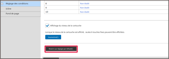Cliquez sur [Réglage des conditions], puis cliquez sur le bouton [Revenir aux rég. initiaux].