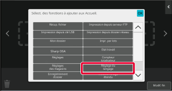 Les réglages sont enregistrés dans la machine et ils sont appliqués.Vous pouvez modifier la position de la touche [Écran d'accueil].