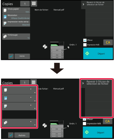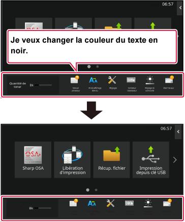 Les réglages sont enregistrés dans la machine et ils sont appliqués.Vous pouvez modifier la transparence des touches de raccourci.