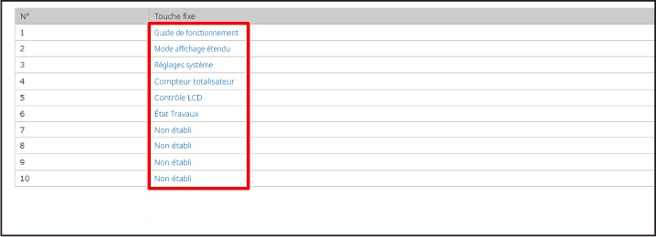 Vous pouvez cliquer sur [Non établi] pour ajouter une nouvelle touche fixe.