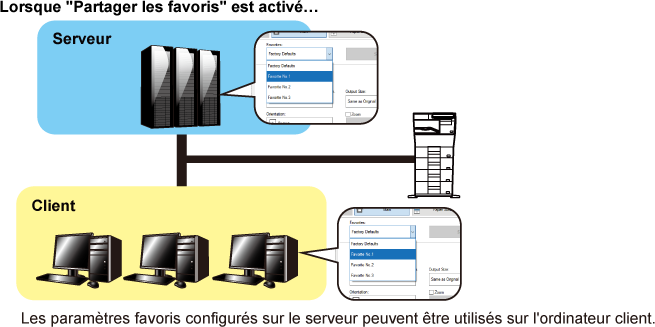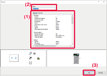Pour une description des réglages, reportez-vous à l'Aide du pilote d'imprimante.Lorsque vous utilisez cette machine comme imprimante partagée, si "Favoris" est défini