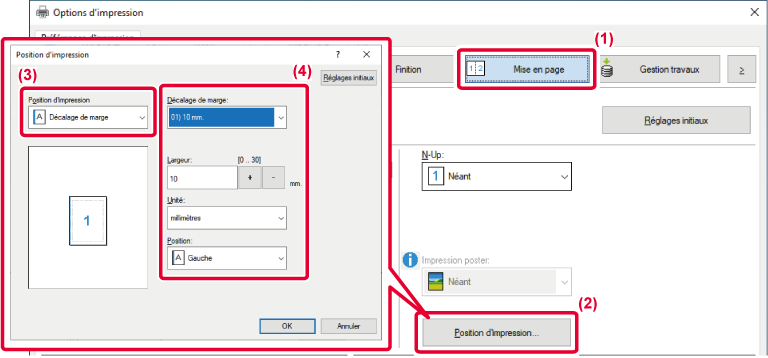 IMPRESSION AVEC UN RÉGLAGE DE DECALAGE DE MARGE (MARGE)