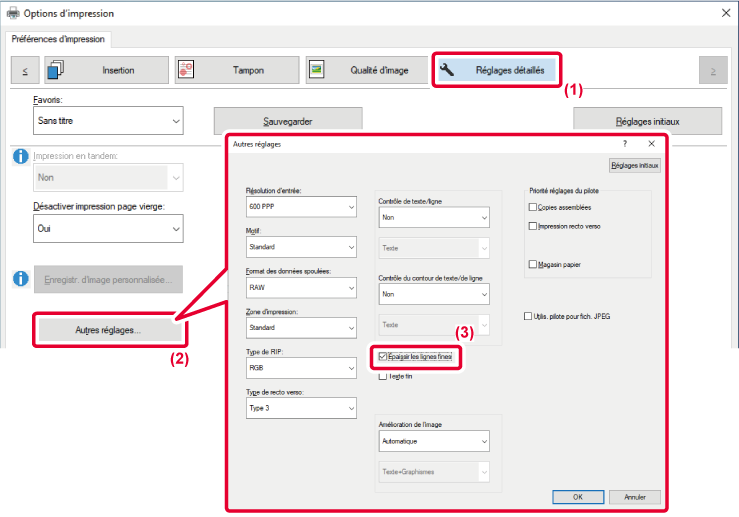 Cette fonction augmente l'épaisseur de la ligne complète lorsque les lignes d'impression