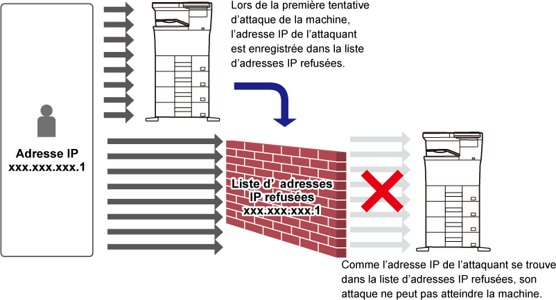 Spécifiez [Forcer la rétention] ou [Désactiver les travaux sauf Impression en attente] lorsque la fonction à utiliser est l'archivage de documents. Lorsque [Désactiver les travaux sauf Impression en attente] est spécifié, les travaux d'impression pour lesquels l'archivage de documents n'est pas spécifié dans le pilote d'impression sont annulés. |