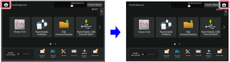 A készülék menti és alkalmazza a beállításokat.Módosíthatja a [Kezdő képernyő] gomb helyét.