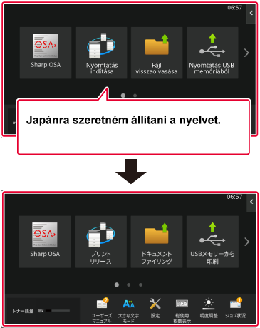 Koppintson a [Nyelv beállítás] gombra a kezdő képernyőn.